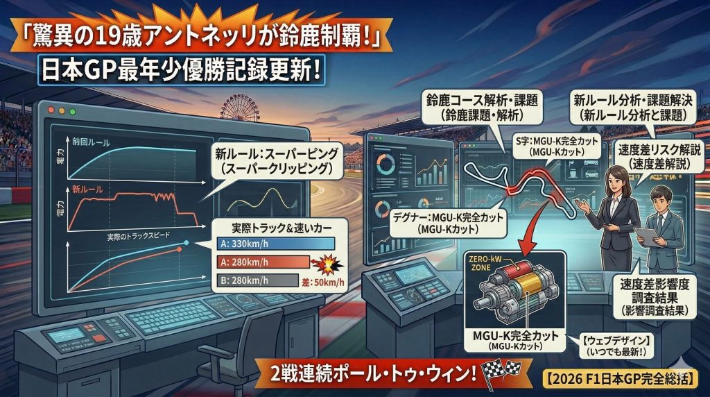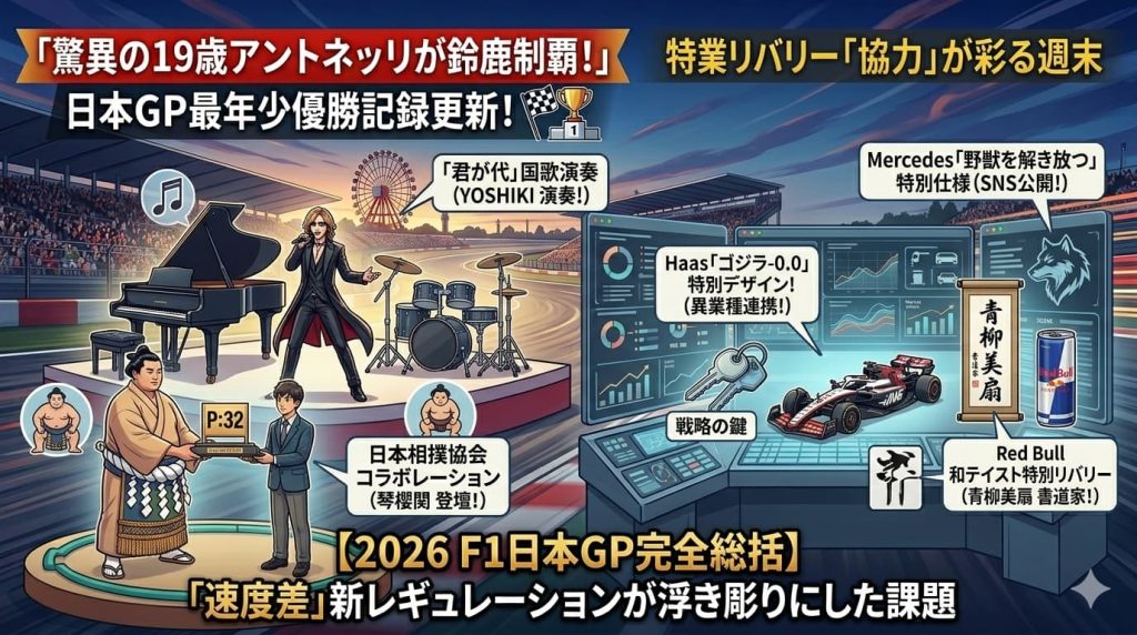 【2026 F1日本GP完全総括】驚異の19歳アントネッリが鈴鹿制覇!優勝の要因と、新レギュレーションが浮き彫りにした「速度差」の衝撃波紋